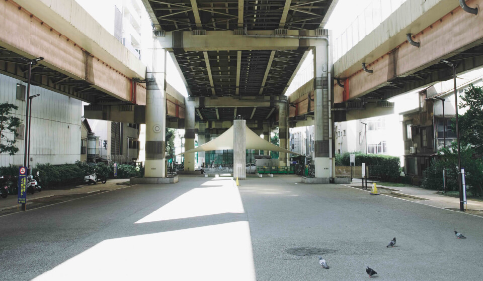 隅田川に沿って走る首都高速道路。その高架下に位置する区立公園があやめ公園です。現在は日々の暮らしのなかで隅田川の自然を意識することはあまり多くありませんが、より隅田川と親しめるような動線をこの公園スペースが担えるよう構想していきます。